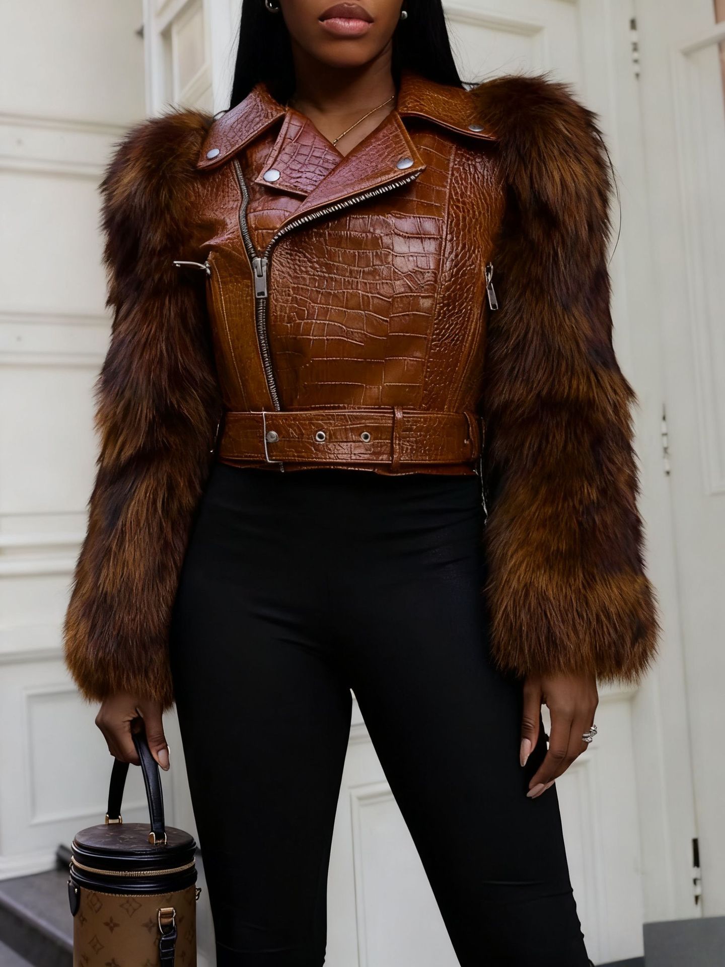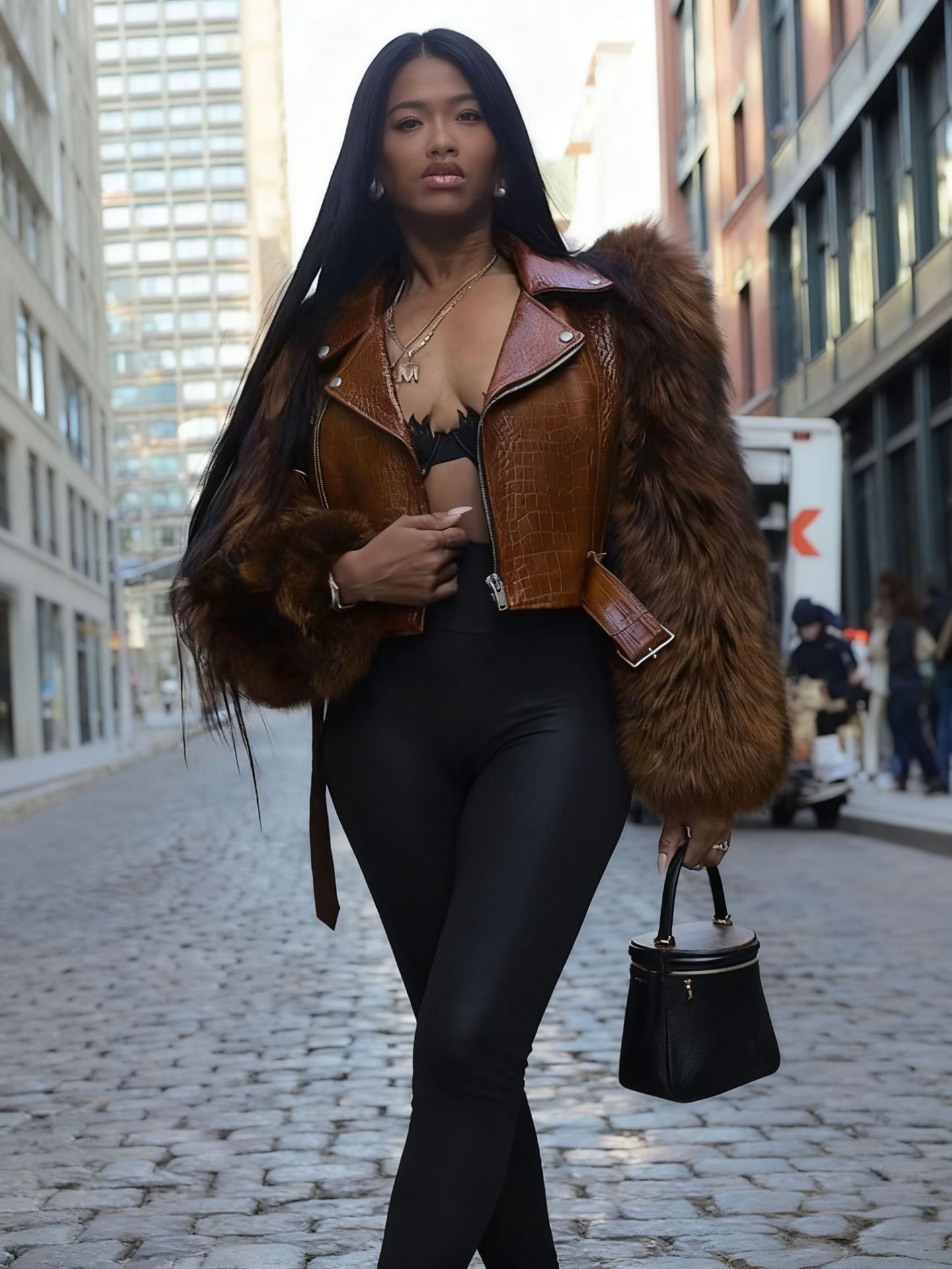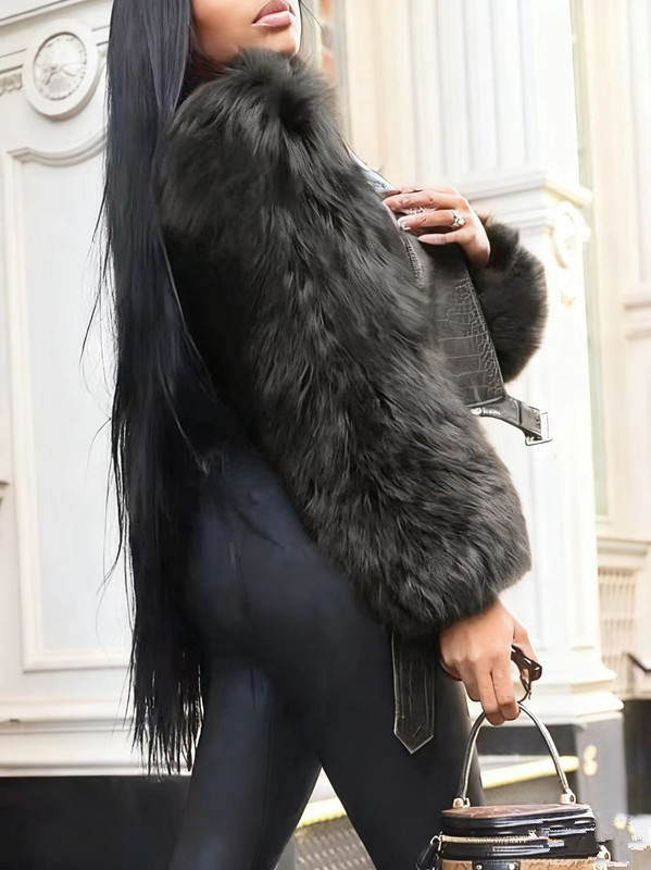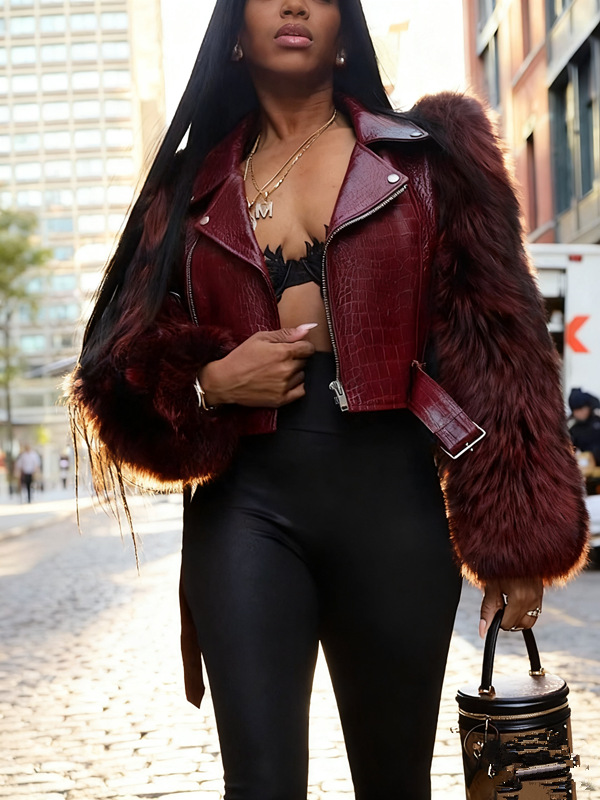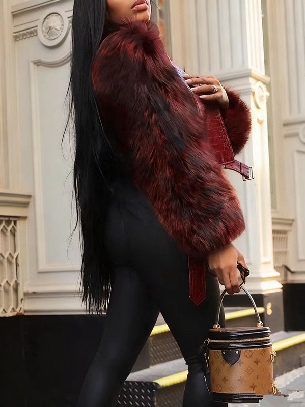Fashion style +Material Closure Silhouette clothing Faux fur Zipper Stand-up collar Short Coat