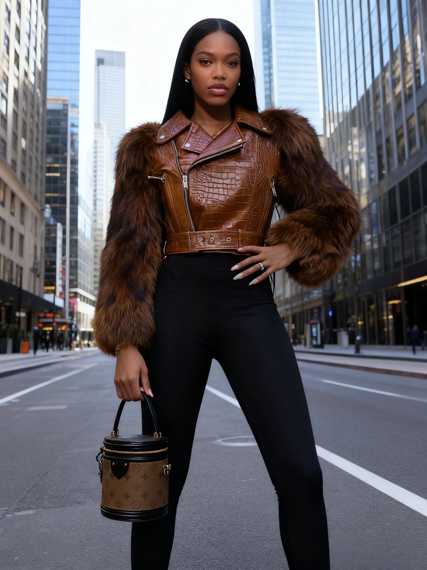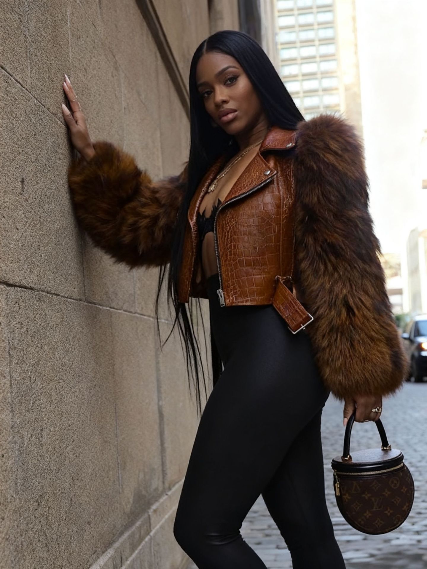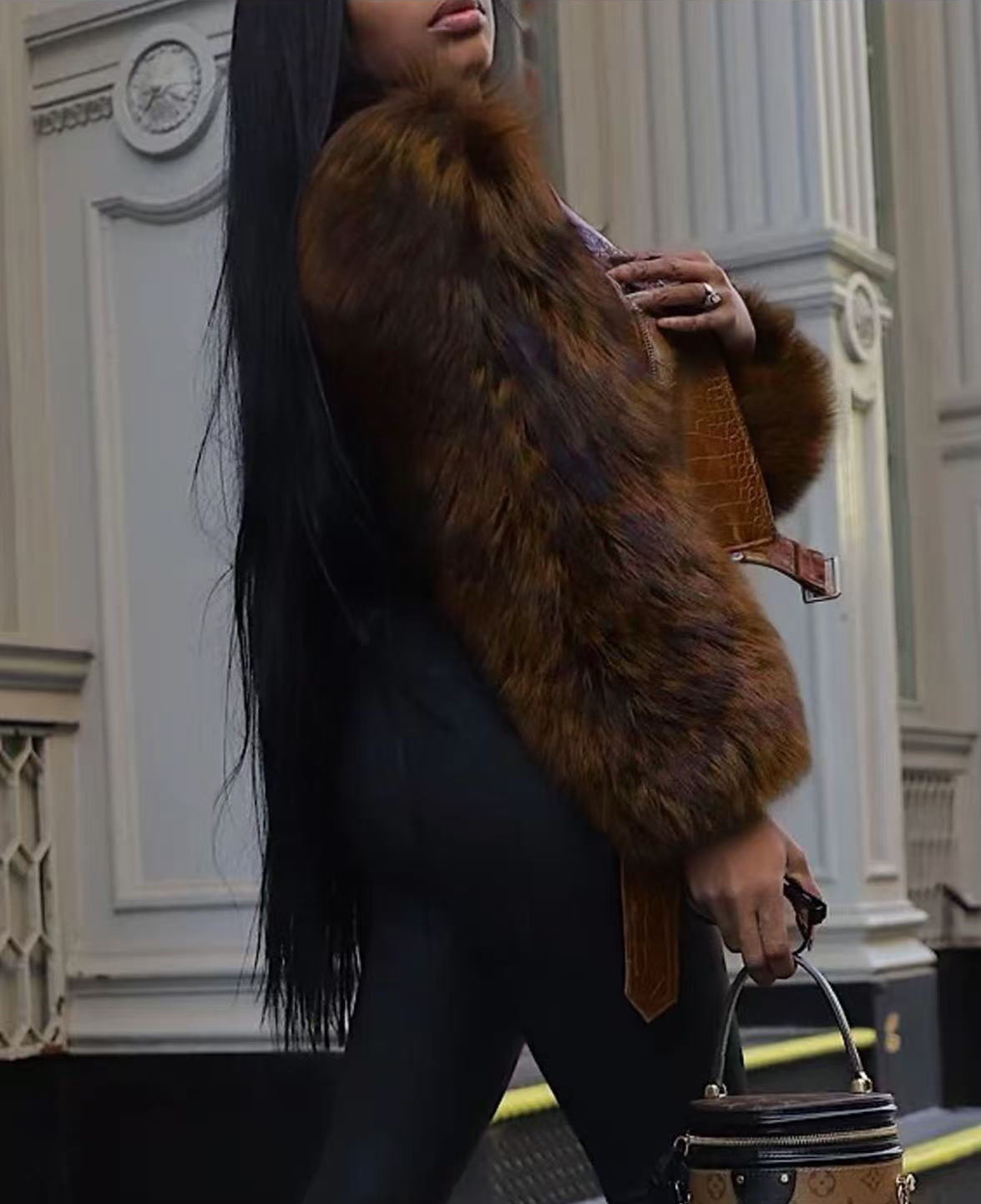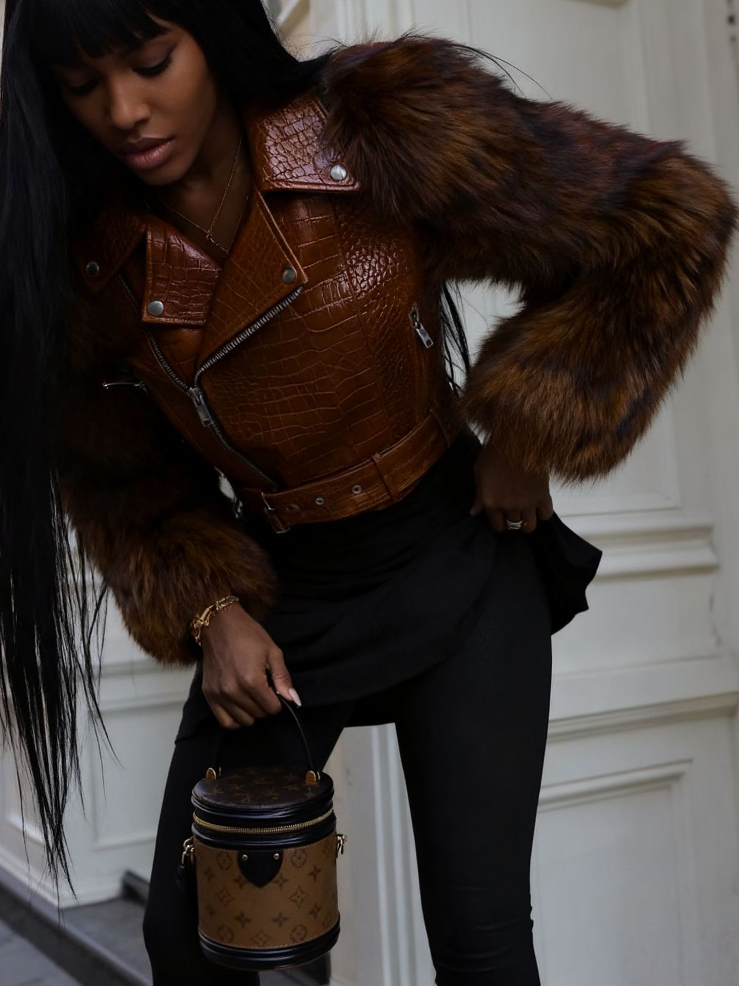 Fashion style +Material Closure Silhouette clothing Faux fur Zipper Stand-up collar Short Coat