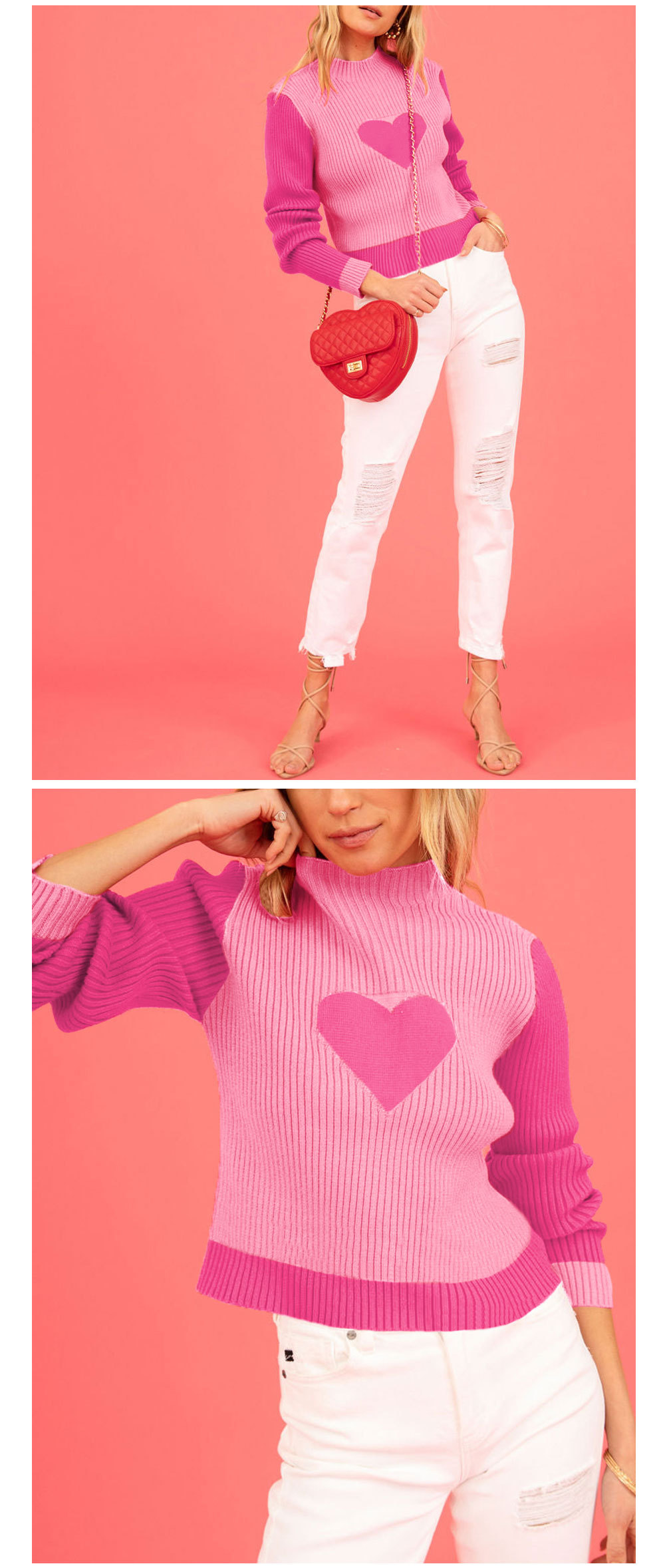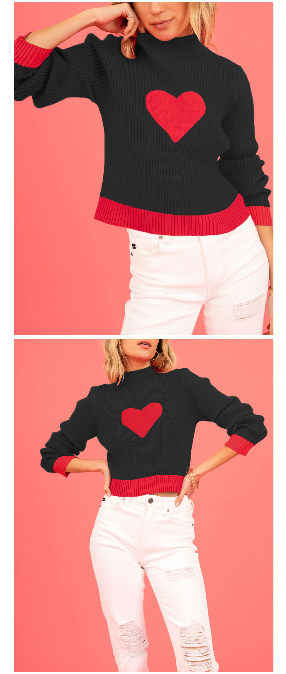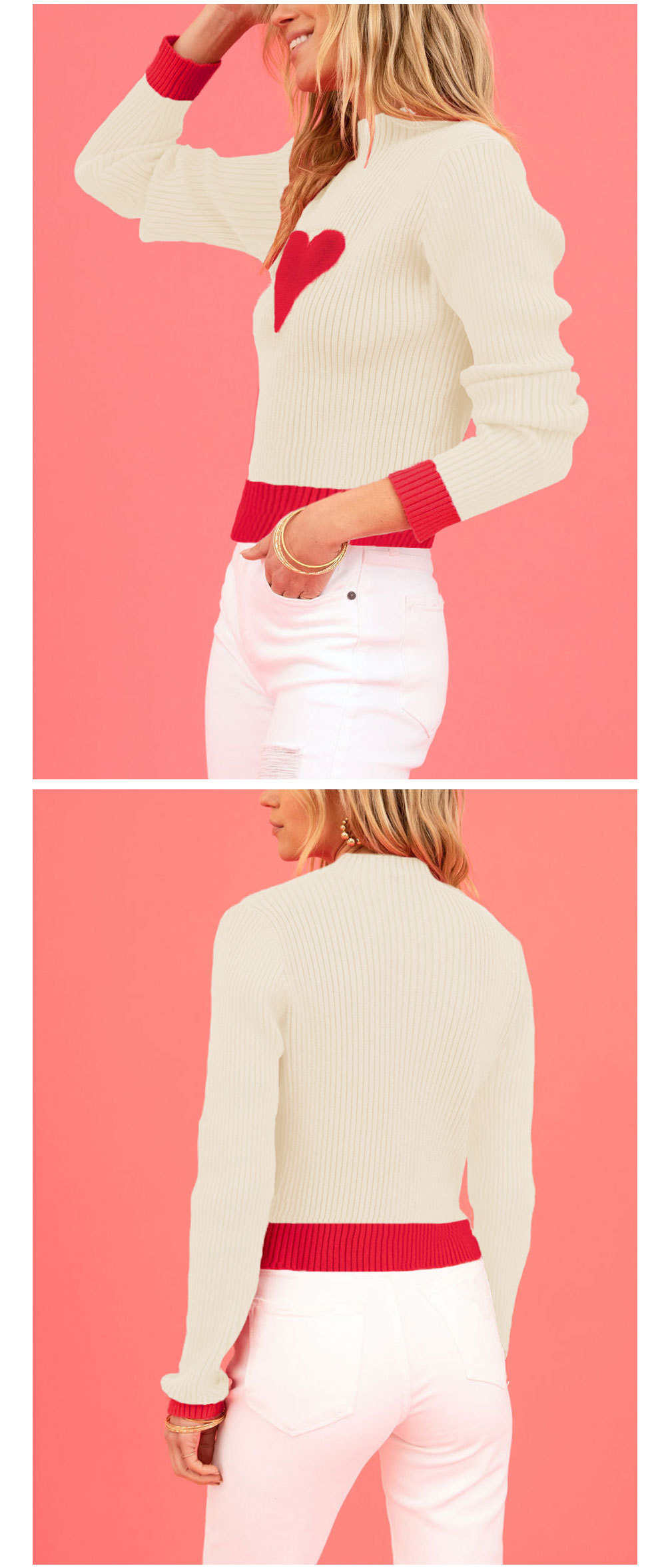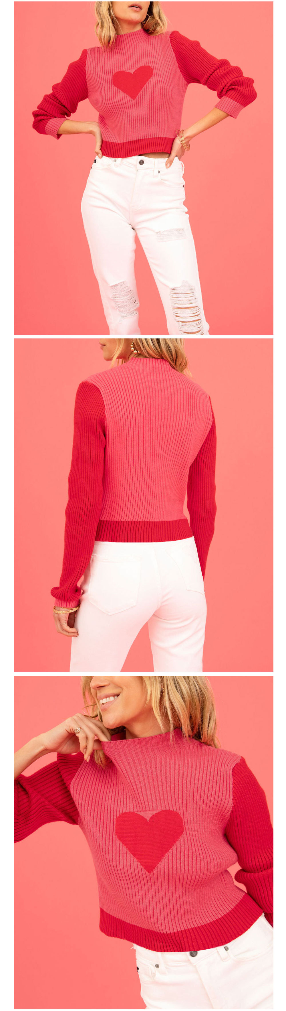 Valentine's Day love peach round neck pullover knitted sweater